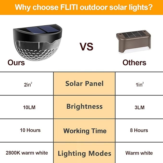 - ?300mAh Battery? Each solar light with 3 lumens, warm white led, 16 packs will add safety and soft glow to your deck, porch, or other outdoor structure?making nightly stroll safe for the family.